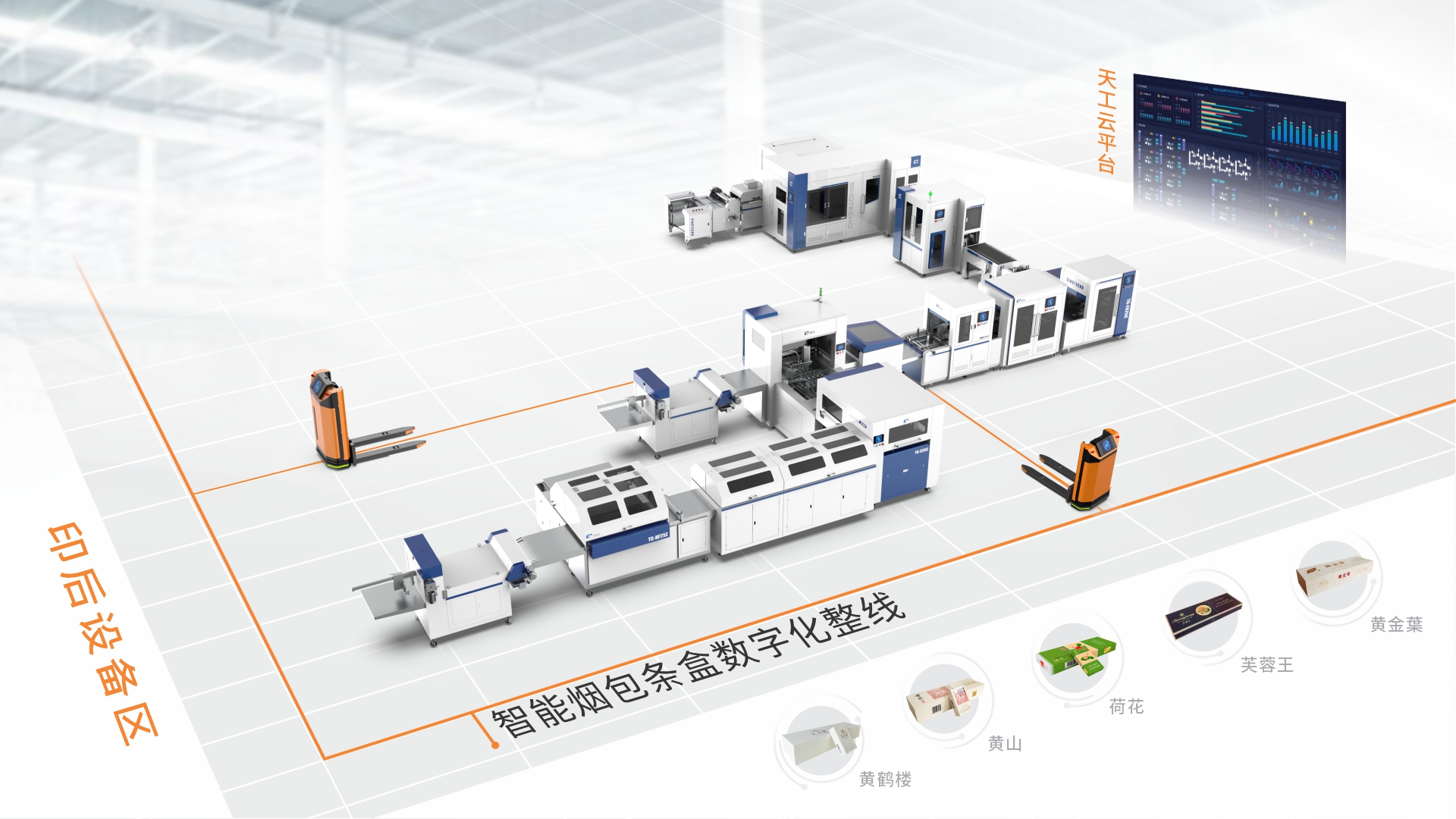 中科天工重新定義“條盒整線”!黃鶴樓煙包條盒數(shù)字化整線,無縫連線皮殼貼襯一體機,打通了精品盒智造的最后一公里。中科天工重新定義“條盒整線”