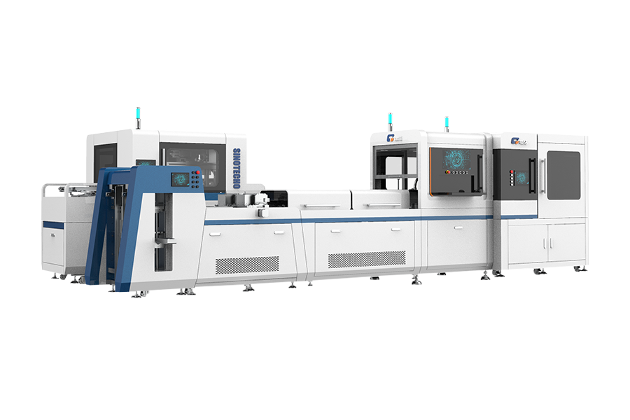 TG-CA60P煙包高速開(kāi)口盒數(shù)字化整線實(shí)現(xiàn)了棧板供內(nèi)模及圍條、上/下蓋、面紙的供送、圍合、上膠、合攏、校正、預(yù)成型、保壓、打角、定位、成型、正壓、四面壓泡、出盒等動(dòng)作在一條生產(chǎn)線上自動(dòng)完成。線體生產(chǎn)效率高,運(yùn)行穩(wěn)定。
