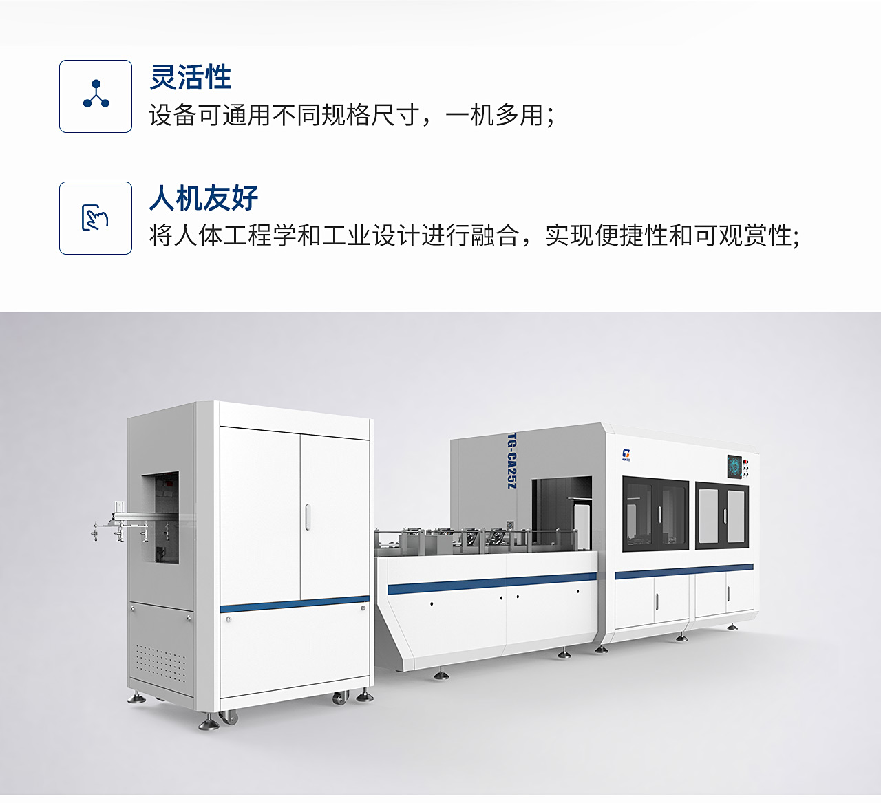 TG-EC30Z全智能裝圍條上蓋組裝機是目前國內(nèi)高端智能包裝設備之一,應用于高端精品酒盒包裝領(lǐng)域的定制成型。同時可實現(xiàn)不同尺寸的酒盒,頂蓋尺寸。可滿足不同產(chǎn)品的生產(chǎn)需求。